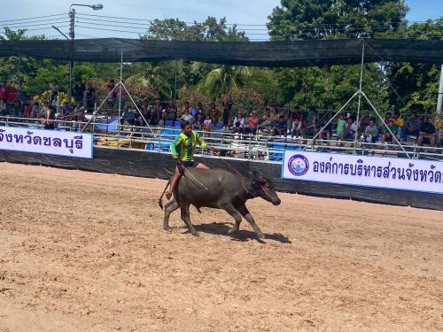สิบเอกอภิณพ มังกรแก้ว พัฒนาการอำเภอบ่อทอง พร้อมด้วยเจ้าหน้าที่พัฒนาชุมชนอำเภอบ่อทอง ร่วมขบวนแห่ประเพณีวิ่งควายจังหวัดชลบุรี ครั้งที่ 154 ประจำปี 2568 โดยมีการจัดขบวนแห่เกวียนกัณฑ์ 13 กัณฑ์ตามทศชาติชาดก มีการประดับตกแต่งเกวียนและควายอย่างสวยงาม ในการนี้นายนันทวัฒน์ ทองช่วง นายอำเภอบ่อทอง, หัวหน้าส่วนราชการ, ผู้นำองค์กรปกครองส่วนท้องถิ่น, กำนัน, ผู้ใหญ่บ้านและประชาชนอำเภอบ่อทองเข้าร่วมกิจกรรมดังกล่าว เพื่ออนุรักษ์ให้อนุชนรุ่นหลังได้ชม และส่งเสริมให้ประชาชนได้ร่วมกันอนุรักษ์ประเพณีท้องถิ่นให้คงอยู่สืบไป
